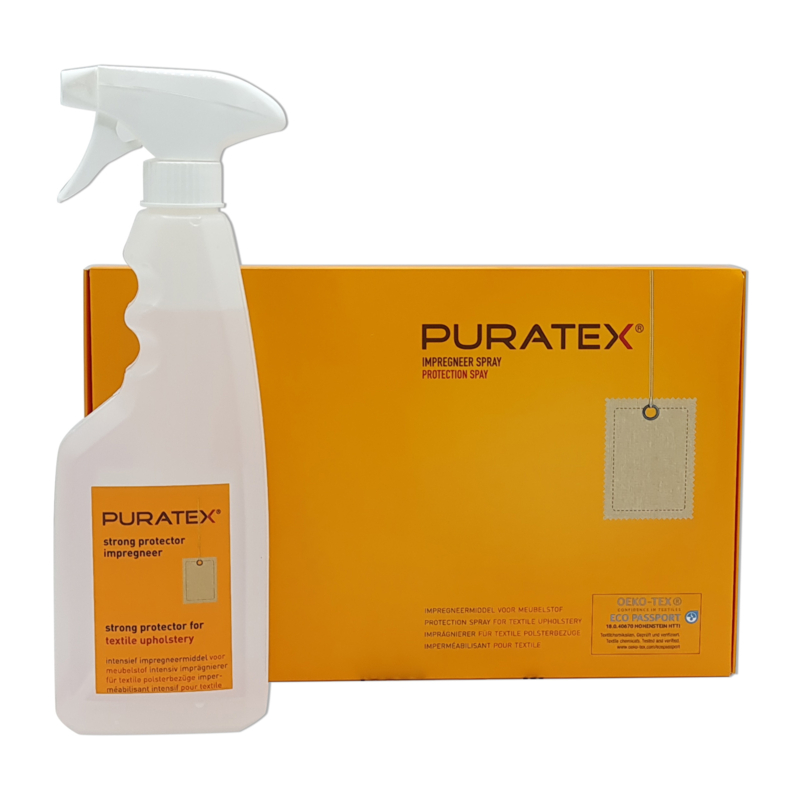 With Puratex® you don't have to lug your sofa outside. You can safely use Puratex® impregnation indoors. It is odourless, colourless and contains no solvents or propellants. Also no PFAS.